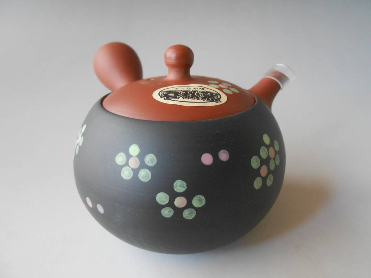 - 常滑焼! 春秋窯 ☆朱泥小丸花散らし急須☆ M431 新品 茶器 ポット ギフト