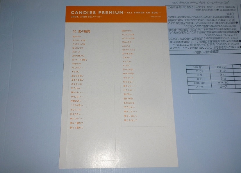 - Candies Premium CD BOX Disc2 20曲目 訂正ステッカー