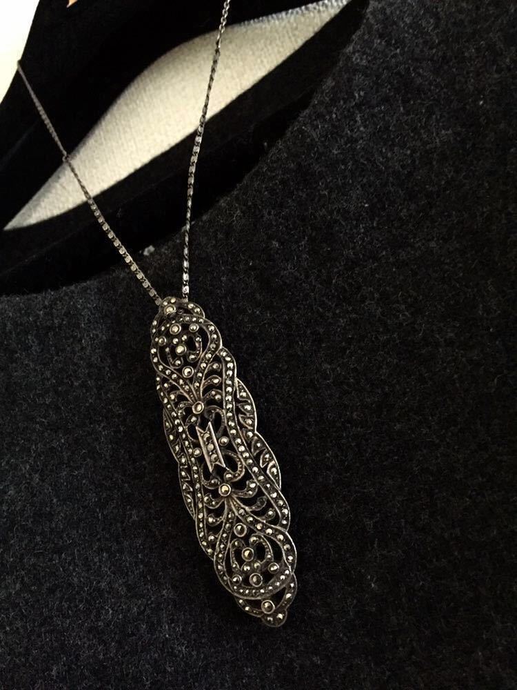 - 【超美品】19~20世紀 アール・デコ アンティーク ジュエリー マーカサイト ネックレス ヤフオク限定 シルバー 全長29cm 20g 本体8×2.5cm