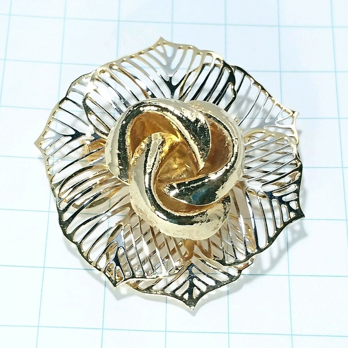 - 送料無料)ビンテージ☆花の刻印 お花モチーフ☆アンティークブローチ A10342
