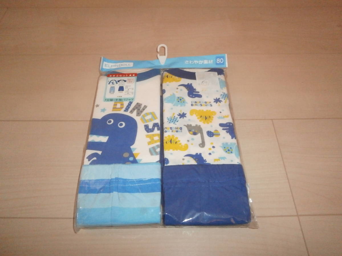- 即決★新品★男児男の子★7分袖+半袖パジャマ★2セット★2点セット★サイズ80★青恐竜★750★乳児幼児赤ちゃんベビー妊娠出産