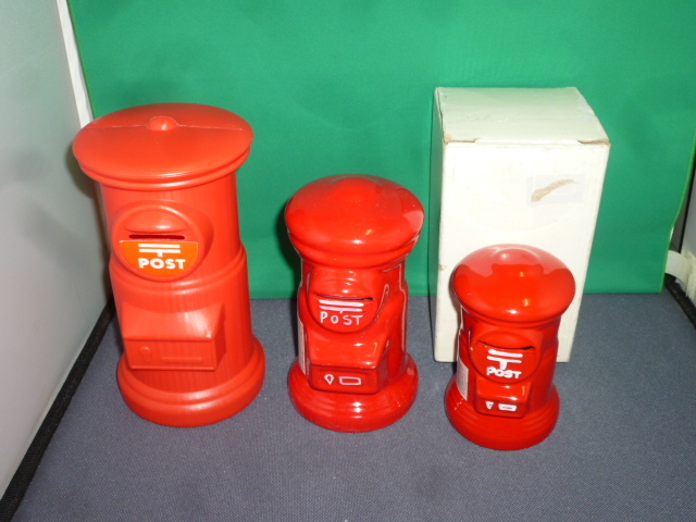 - b★未使用★郵便局 陶器製ポスト貯金箱他3点で