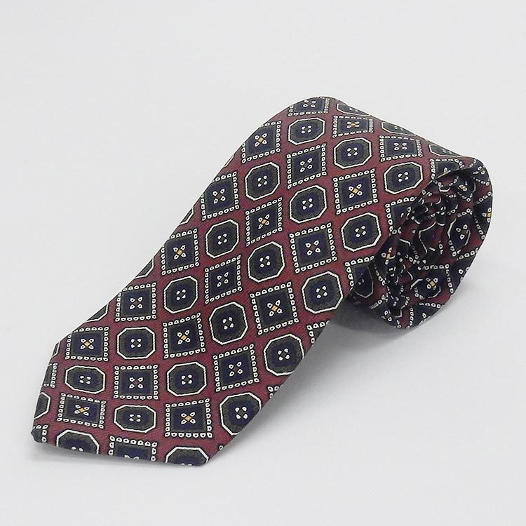 - 英国ADAMLEY生地使用/京都産 プリントネクタイ ワイン×グリーン 大柄小紋 シルク100% 日本縫製 KV-ADM04
