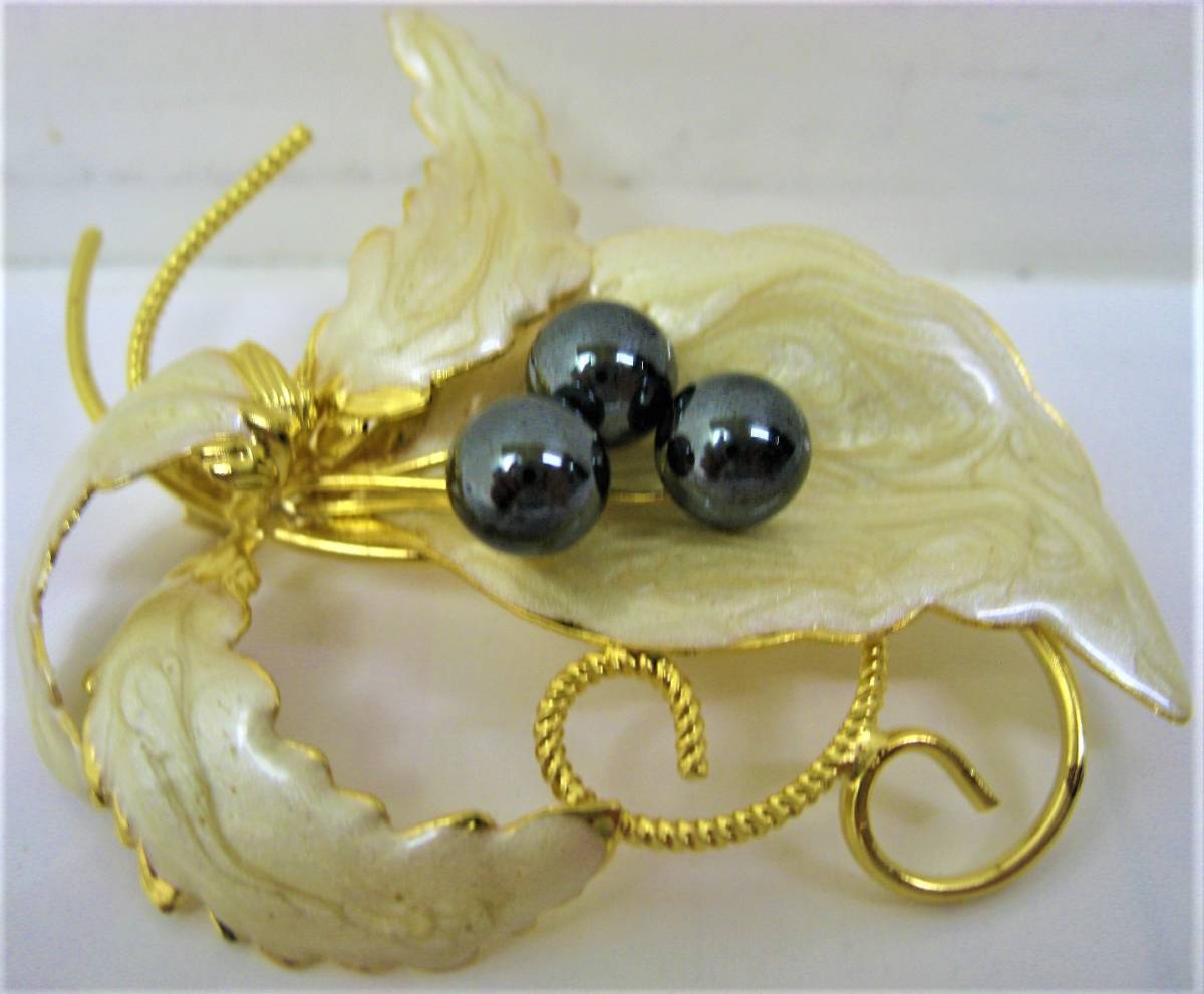 - 【東京 谷中 質屋おぢさん】アクセサリー ブローチ パワーストン ヘマタイト 約 8mm3ヶ ホワイト系七宝
