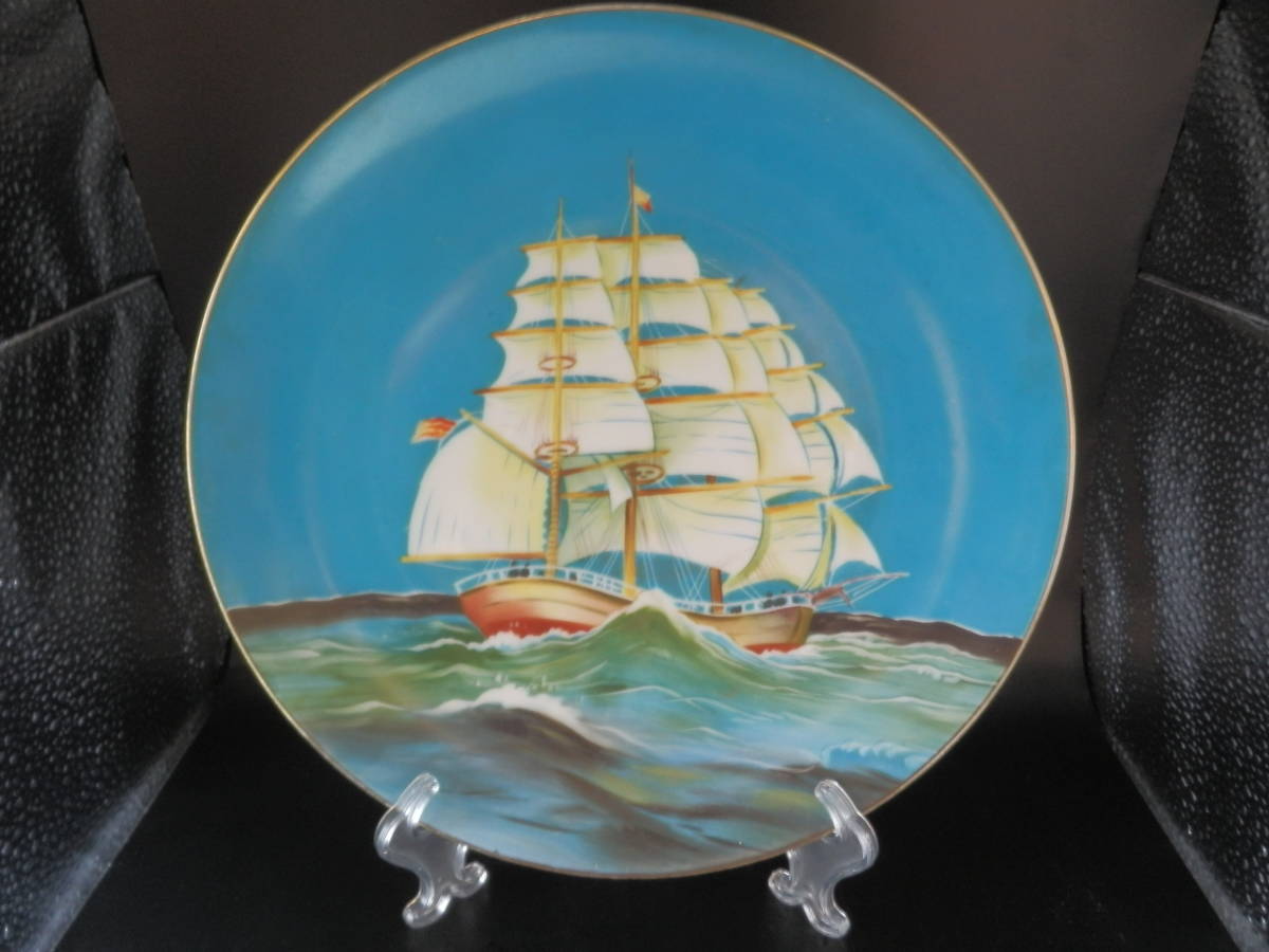 - オールドノリタケ★3本マスト 帆船 ブルー壁がけ絵皿 1枚