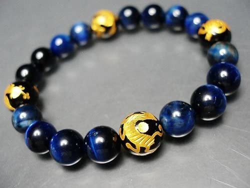 - 御守四神手彫り金箔オニキスエメラルドブルータイガーアイ数珠ブレスプライム