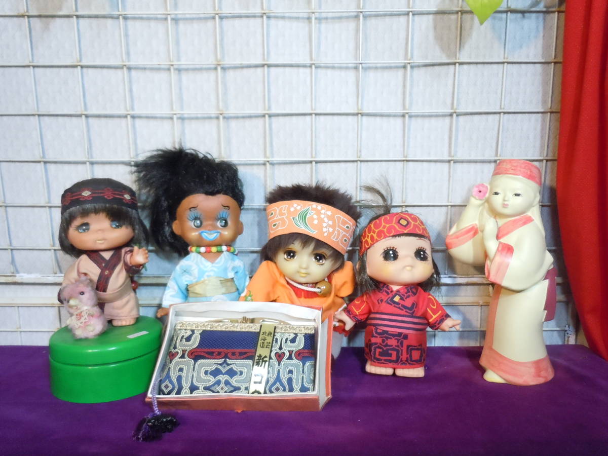 - 【ARS書店】~アイヌ民族~『メノコ』オルゴール付き人形/マタンプ(鉢巻)スズラン模様/ 服はウタリ民族模様/【サイフ】~新コタン~