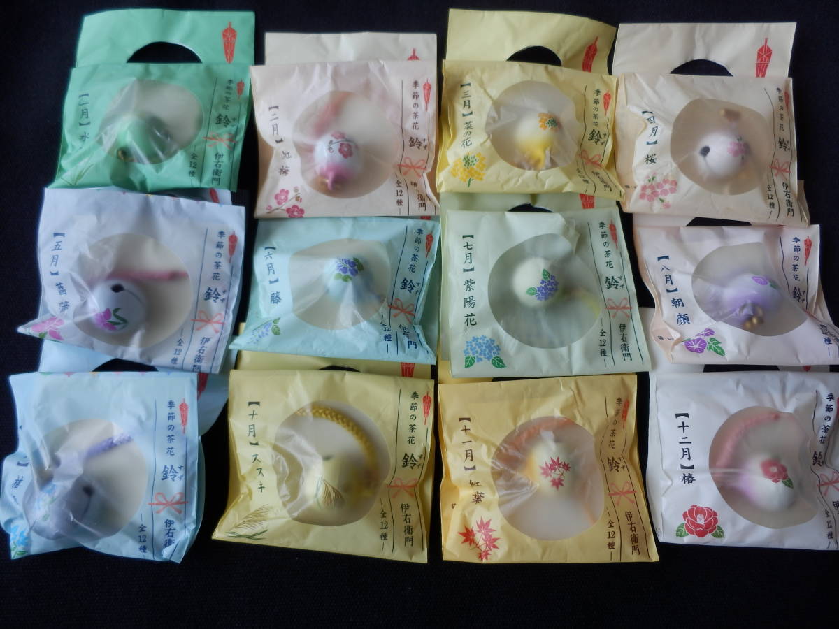 - ★非売品・未使用★伊右衛門★ 鈴 全十二種 根付 ★季節の茶花 2007年★