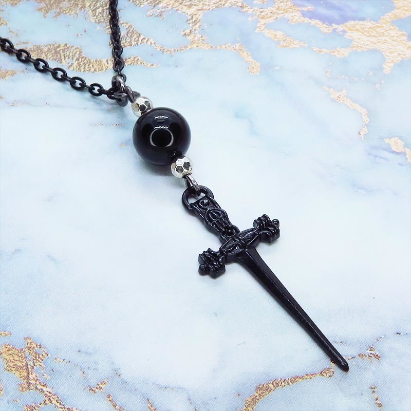 - ブラックカラー 細身のソード(剣)とオニキスを組み合わせたペンダント・ネックレス ゴシック パンク