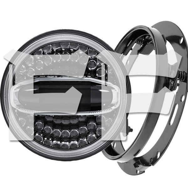 - ハーレーダビッドソン CREEチップ LED 7インチ 108W ヘッドライト ブラケット Hi.Low.ディライト ホワイト オートバイ ブラック 1セット
