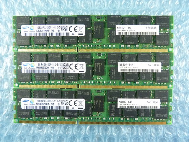 - 1MEK // 16GB 3枚セット 計48GB DDR3-1600 PC3L-12800R Registered RDIMM 2Rx4 M393B2G70QH0-YK0 N8402-146// NEC Express5800/B120e-h取外