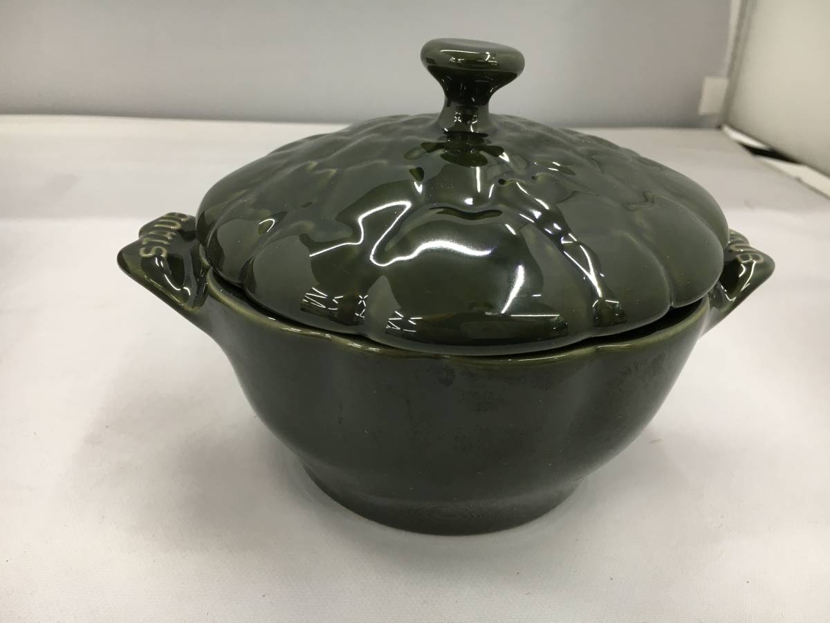 - 未使用品 STAUB ストウブ アーティチョーク ココット ダークグリーン 12.8cm 0.45L