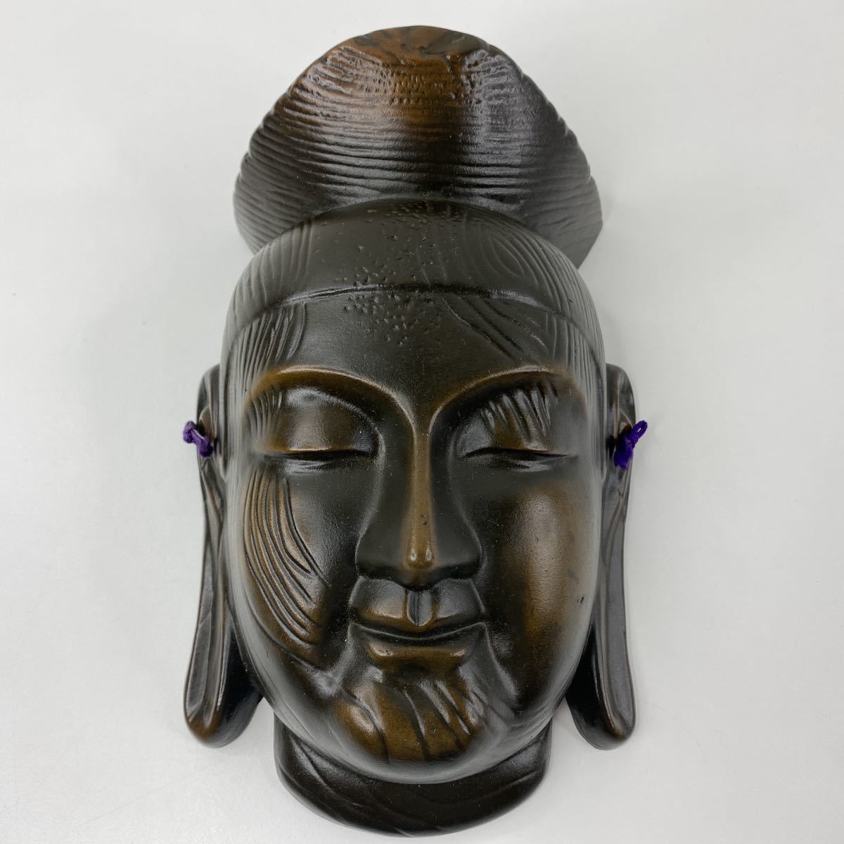 - 10月終了!木製 お面 仏像 飾り・壁掛け用 漆塗り?仕上げ 長さ約19cm / 工芸品 茶道具 インテリア【SB01816S7】