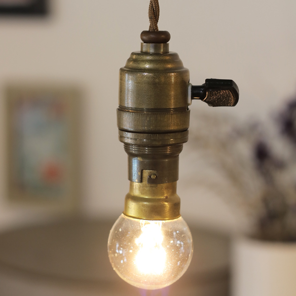 > 1910-50年代 スイッチ付 真鍮 吊り下げ ソケット ランプ フランス アンティーク L*/北欧 照明 磁器 イギリス カフェ 店舗 アトリエ ライト