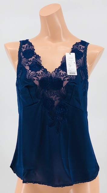 - ◆美品チュールレースラウンドキャミソール◆バスト80◆ネイビー◆日本製◆rcb308