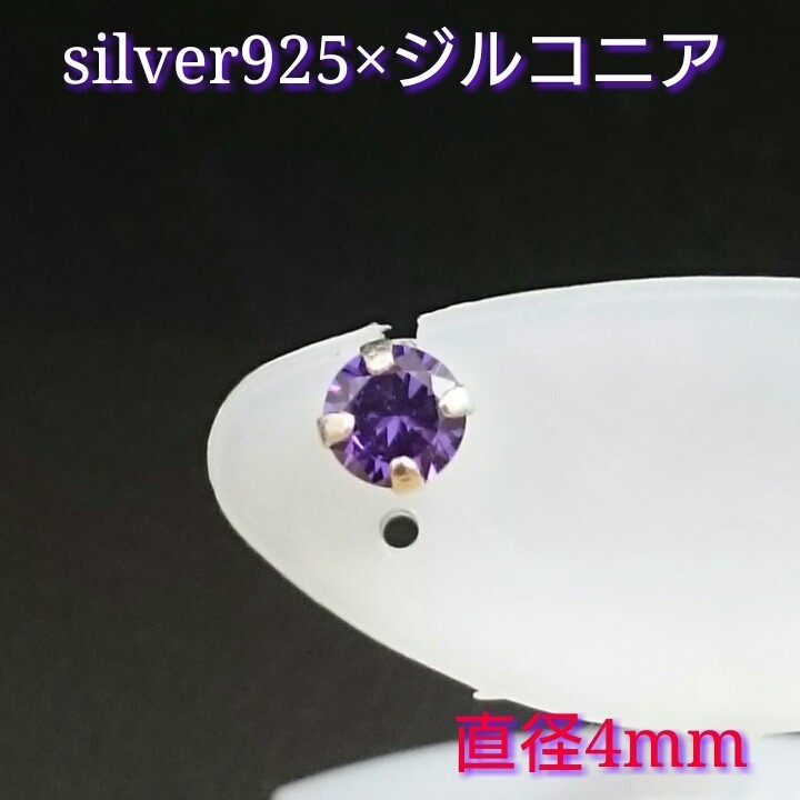> 大人気!!ジルコニアピアス パープル 丸型 4ミリ シルバー925 片耳~ パープル(3)