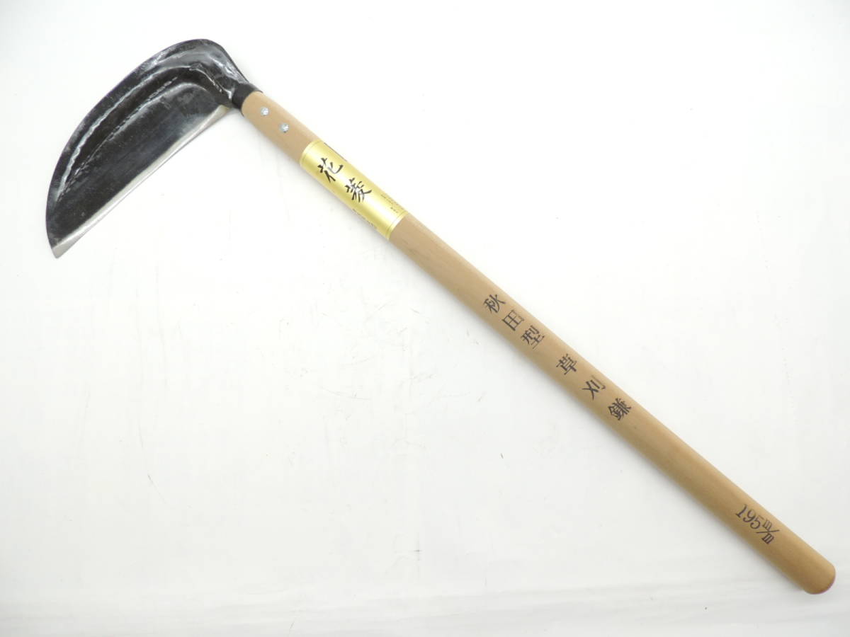 - 花菱 秋田型 薄鎌 手打鋼付 195ミリ ホー木柄540ミリ やわらかい草用 除草 草刈鎌