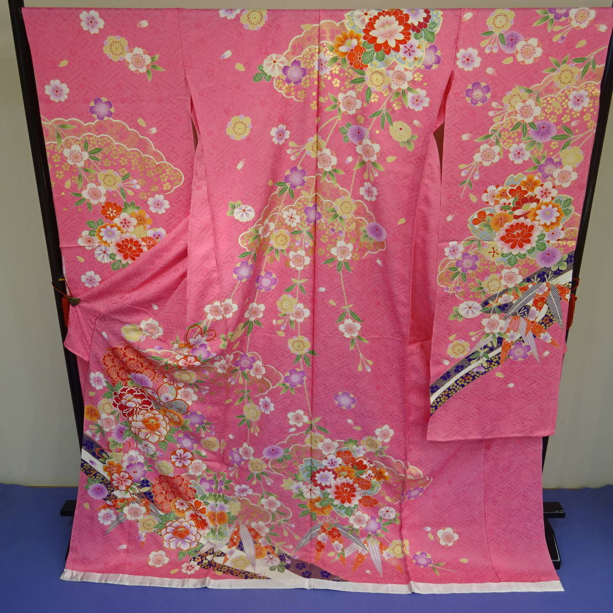 - 新品・未仕立て・正絹★本場京友禅振袖★濃ピンク地に雲取りに花尽くし柄です
