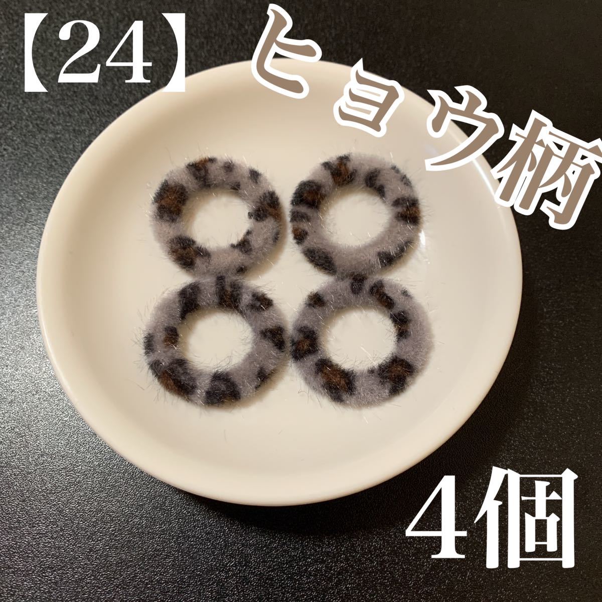 - 【24】 ヒョウ柄 ファーリング グレー 4個