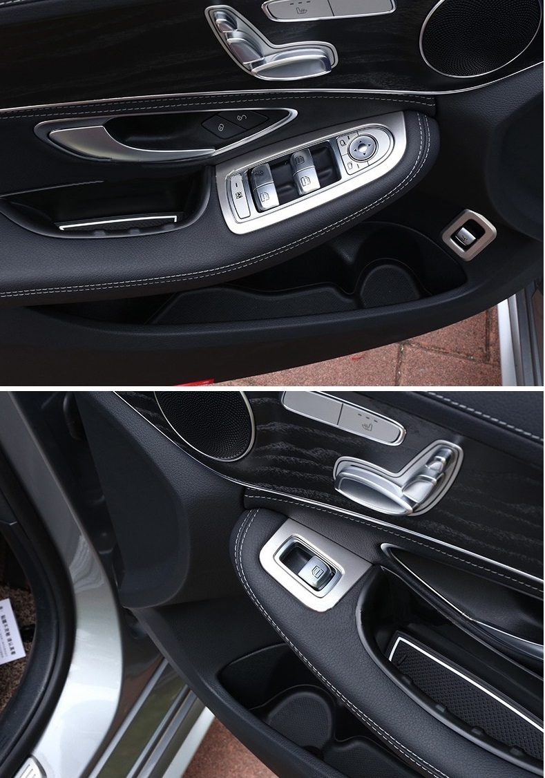 - ベンツ W205 X253 GLC AMG ドア ウィン ドウ スイッチ レバー ハンドル トリム カバー 枠 シルバー 4pcs