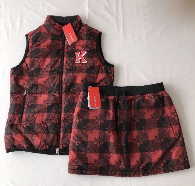 > 新品・未使用 Kappa ゴルフ ダウンベスト&スカート ◆ M ◆ KG962VE72& KG962SK71 レッド カッパ
