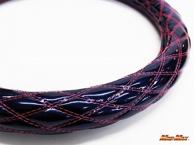 - 【送料800円】トラック用品 国産 エナメル ネイビー/ピンク ダブルステッチ ハンドルカバー Sサイズ/ステアリング