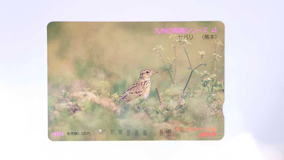 - ●JR九州●九州の県鳥シリーズ4 ヒバリ●記念オレンジカード5300円券1穴使用済