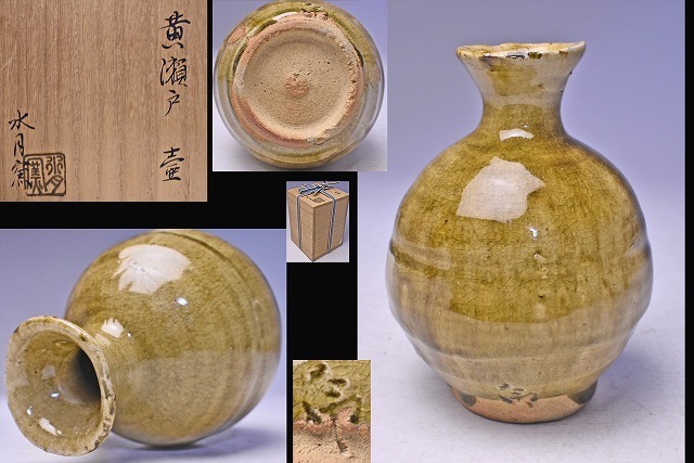 - 水月窯 ★ 黄瀬戸 壺 ★ 共箱 ★ 人間国宝 荒川豊蔵 開窯の窯 ★ やわらかなフォルムと瑞々しい釉薬★ 徳利としても