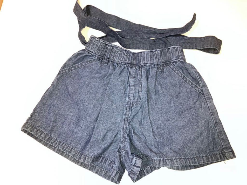 > デニムショートパンツ 半ズボン 取り外し可ウエストリボン付き 綿100% ネイビー サイズ120 色違いも出品中