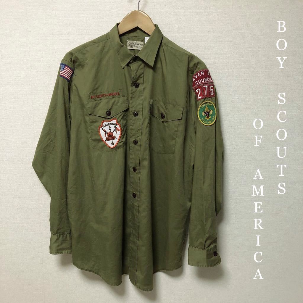 - 70's◇USA製 BOY SCOUTS OF AMERICA◇ボーイスカウトアメリカ 長袖シャツ ミリタリー ワッペン アメカジ ヴィンテージ古着 OFFICIAL SHIRT