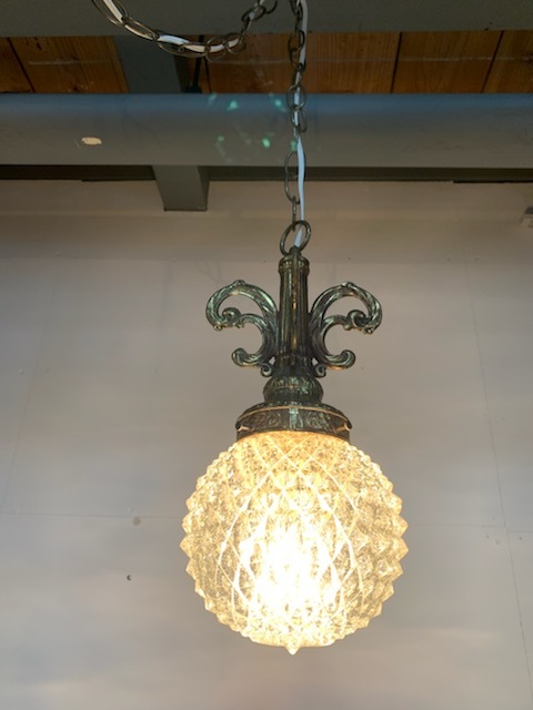 - 照明/アンティークペンダントランプ/ヴィンテージ吊り照明/シーリングライト/クリアガラスランプ丸型/アメリカUSA60s70s
