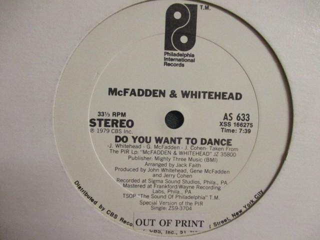 > ★ McFadden & Whitehead : Do You Want To Dance 12'' ☆ c/w Mr. Music (( 落札5点で送料無料