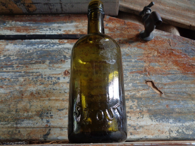 - 【フランス蚤の市エンボスのガラス瓶】ビードロvauxs stautワインボトルビール瓶レトロ古道具アンティーク骨董インテリアインダストリアル