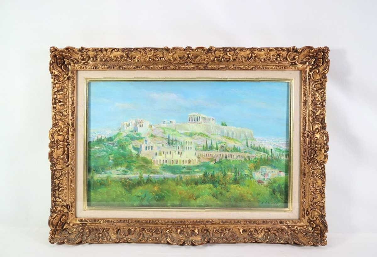 - 真作 沢江彰伸 油彩「ギリシャ アクロポリス」画寸 M10 大阪府出身 白亜美術創立会員 刑部人に師事 ギリシャを代表する都市国家全景 5239