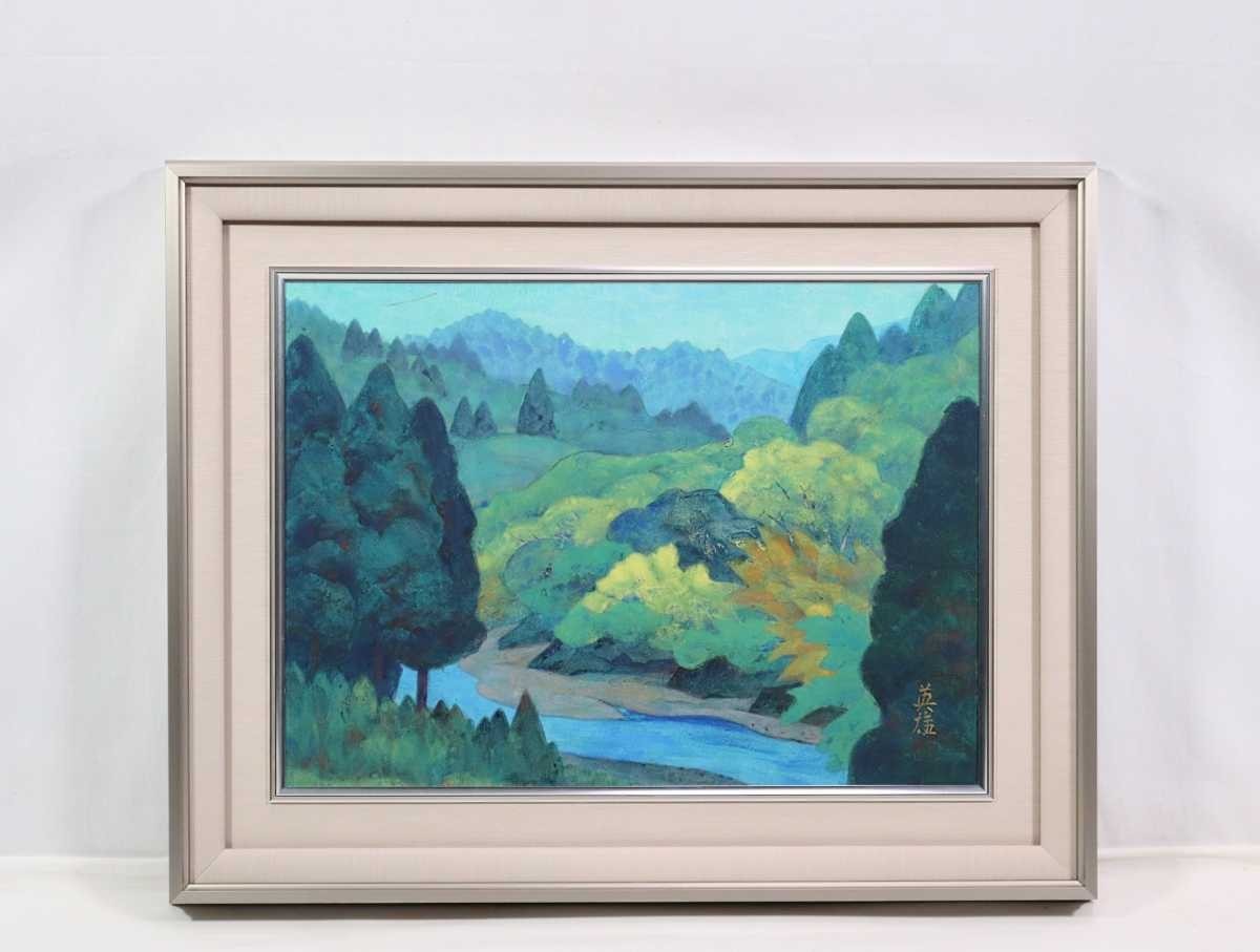 - 真作 谷口英雄 日本画「緑映」画寸 8号 京都府出身 山元春挙、西山翠嶂に師事 奥深い山林を深みのある緑系の絵の具を使い分け表現 5513