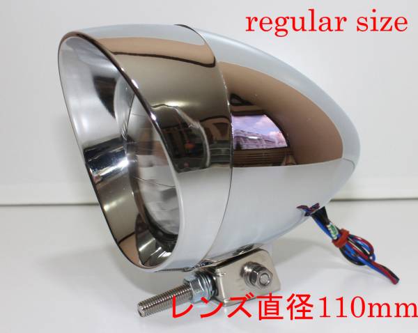 > クラシックマニア必見 クロームメッキ 汎用 弾丸ヘッドライト レンズ径110mm