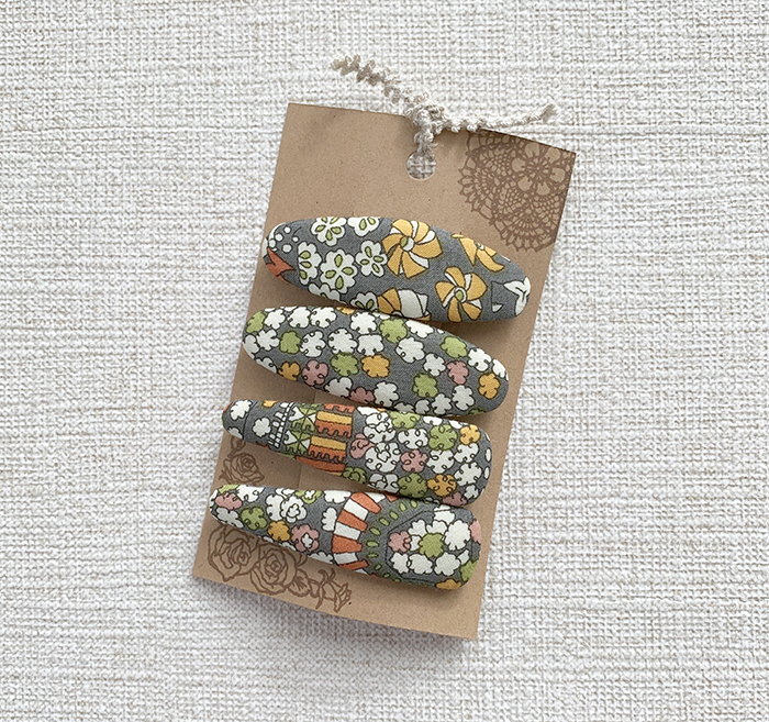 - ★ ハンドメイド リバティプリント使用 小花柄5㎝パッチンピン ホールドライブ グレー ★
