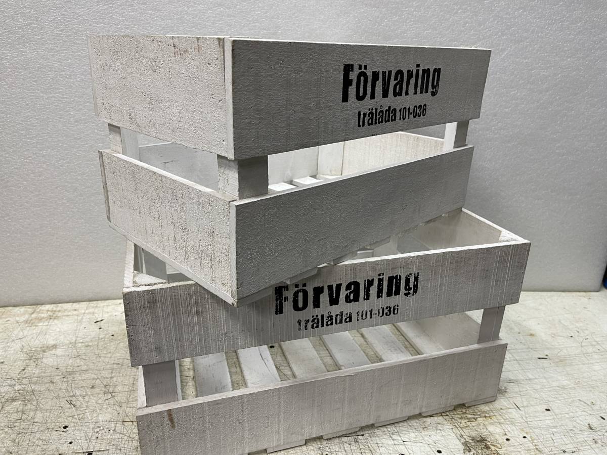 - 物入れ 収納木製コンテナ◆二個大小 50㎝×35㎝×高さ25.5㎝★木製◎ ホワイト 箱◎文字つき◆Y-10