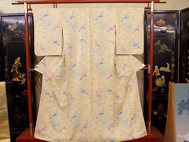 > きもの今昔4406 小紋のきもの 正絹広衿袷仕立て 胴裏が黄変酸化してます 表地及び襟の汚れ無し 身丈159cm