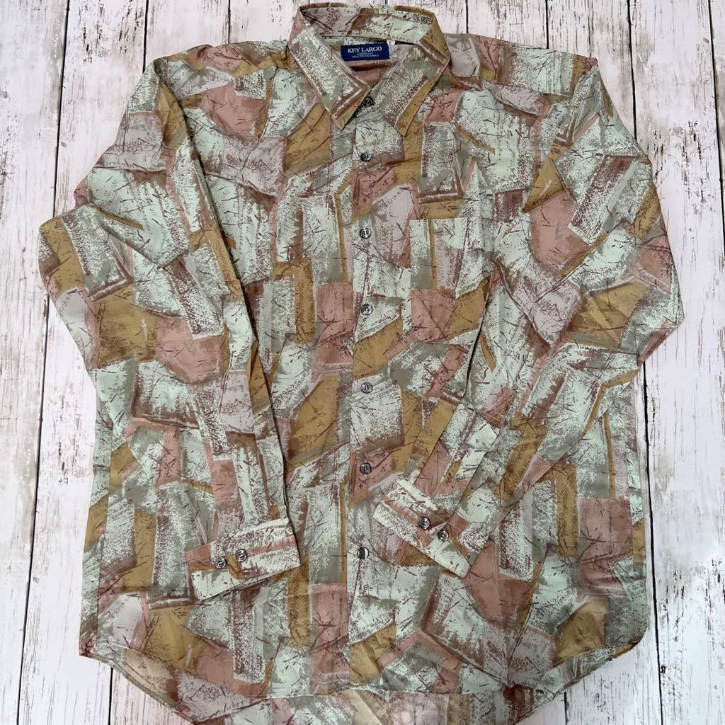 - KEY LARGO 総柄 柄シャツ レトロ アート ビンテージ 長袖シャツ ポリエステル100%