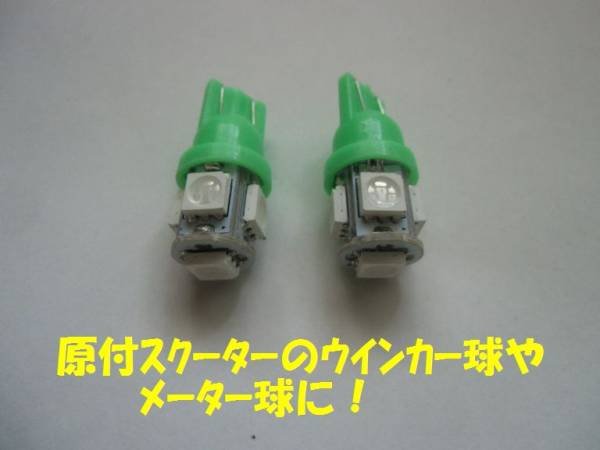 - 汎用5連LED T10ウエッジ球 【グリーン×2個セット】