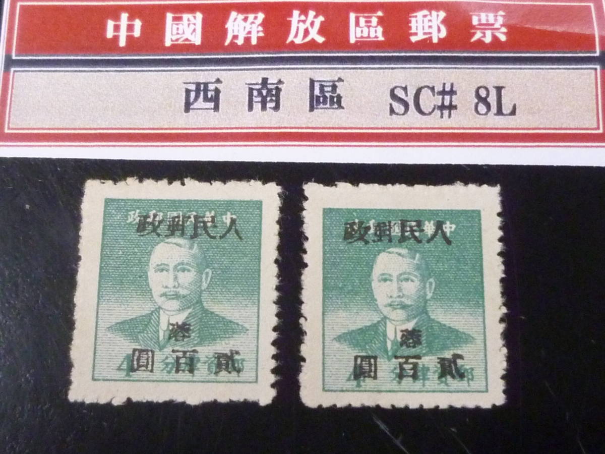 > 22L A №243 中国解放区切手 西南区 1950年 SC#8L48-49 成都加蓋(銀元)改値 "郵"字クズレ 計2種 未使用NH・VF