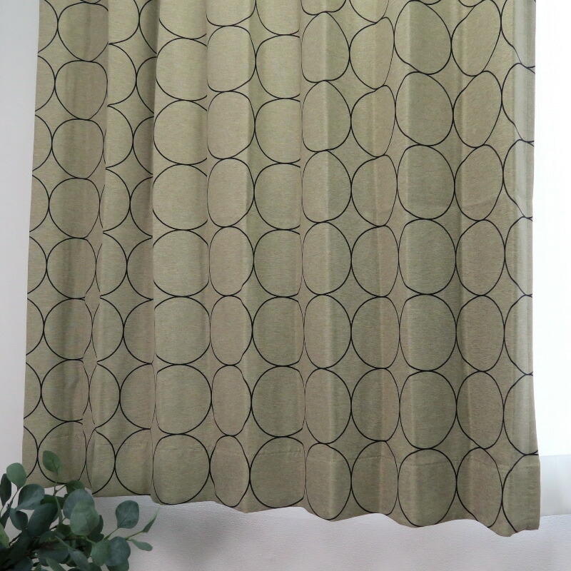 - 遮光カーテン 北欧 サークル柄 ブラウン 幅200cm×丈85cm1枚 日本製 プリーツが綺麗な形態安定加工