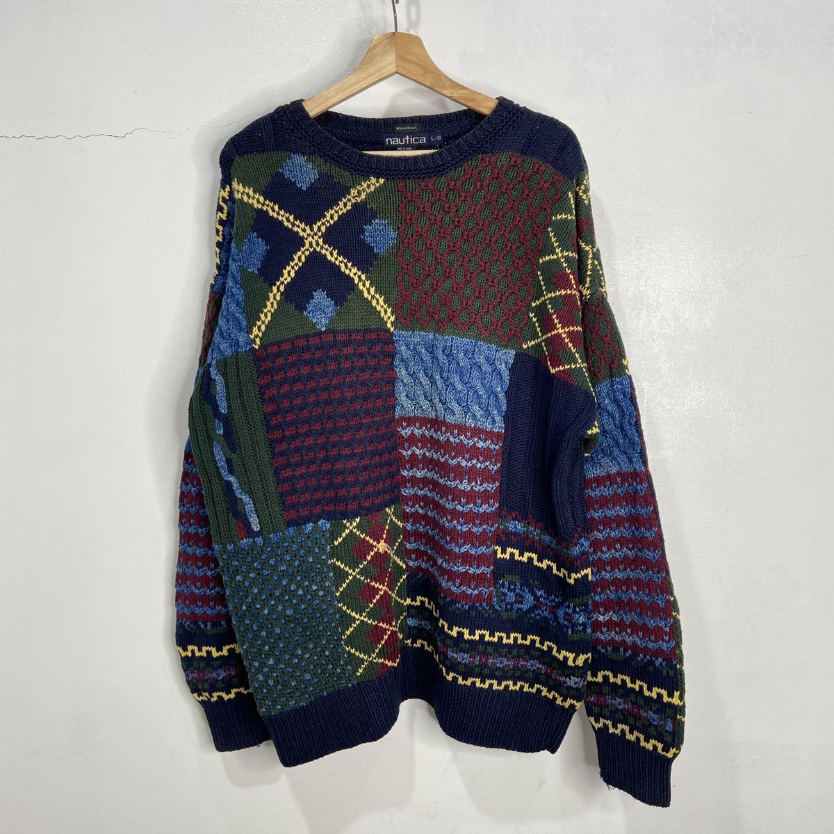 - 送料無料☆90s☆nautica☆ハンドニット☆コットンニット☆パッチワーク☆3Dニット