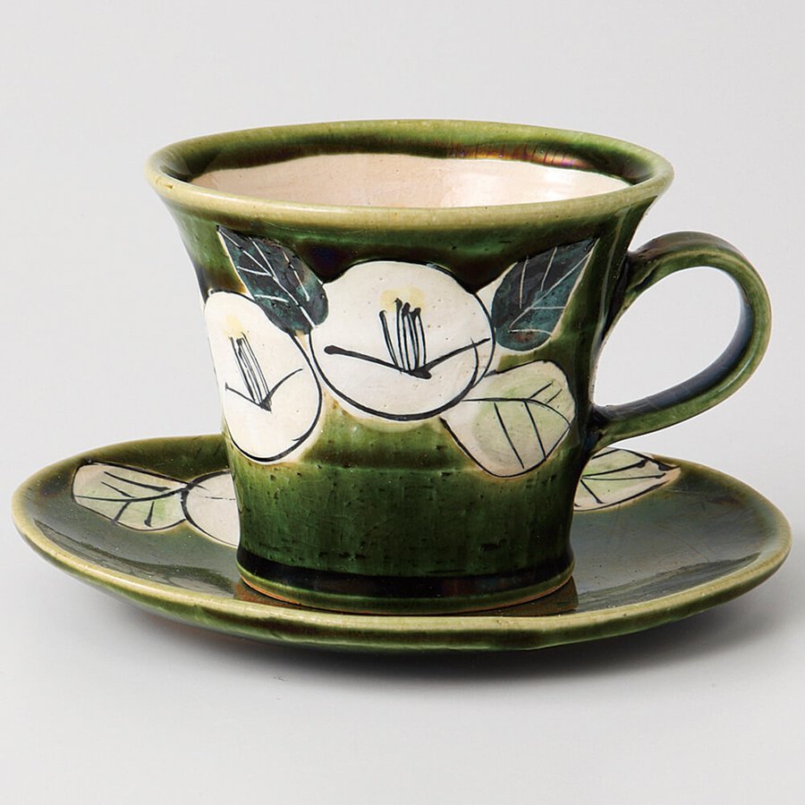 - 美濃焼! 達武衛 ☆織部椿碗皿☆ 新品 ギフト V4013-4 紅茶 カップ ミルク ラテ エスプレッソ カプチーノ 茶器 ギフト