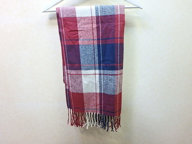 - n211k ストール 縦57×横180cm 赤×紺×白 チェック柄 防寒 古着 中古 マフラー レディース