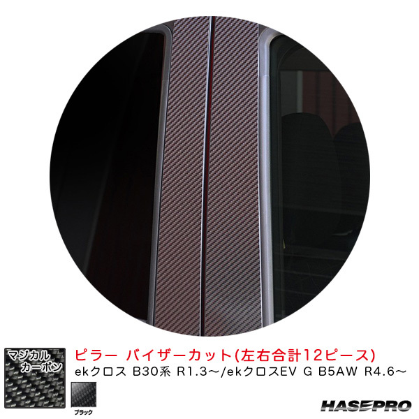 > マジカルカーボン ピラー バイザーカット ekクロス B30系 R1.3~/ekクロスEV G B5AW R4.6~ カーボン【ブラック】 ハセプロ CPM-V39 ht