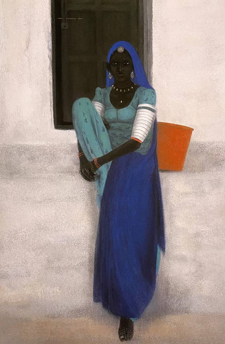 - 長谷部日出男、〈ジャイサルメールの女〉、希少画集画、高級新品額・額装付、状態良好、送料無料