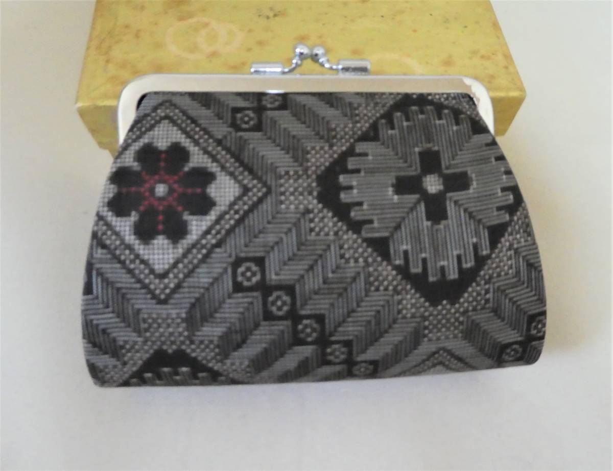 - ⑨和装 小物 がま口バッグ ポーチ 黒 グレー系 レトロ