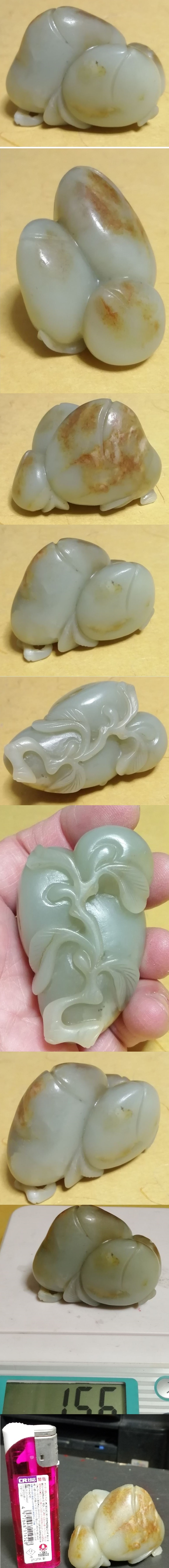 清代 帯皮 和田玉 仔料彫り 桃形原石置物 重さ156 本物保証 古美術品 骨董品